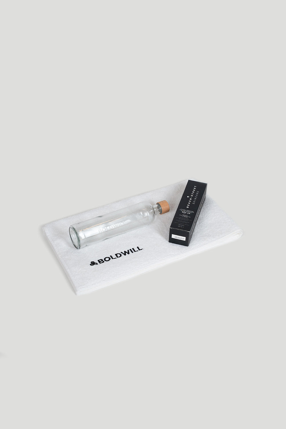 The bundle features the [AC35.Hemp] Sports Towel, made from hemp and organic cotton for extra softness and antibacterial properties. The [AC23.Glass] Sports Bottle, crafted from reinforced glass with a plastic free lid. And the BEACH-STREET SPF 50 sunscreen, made from natural ingredients while ensuring the high level of protection your skin needs.