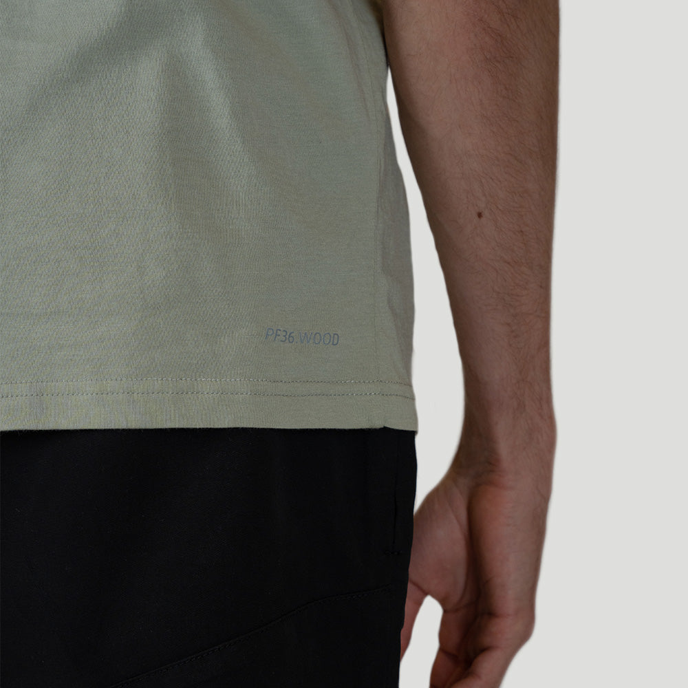Our PF36.Wood t-shirt is made from the lightest plastic free material that we are currently able to make. After lots of iterations, we’ve created a 140 gsm performance fabric, made from TENCEL™ Lyocell and GOTS certified organic cotton. Making it lightweight, anti-static and naturally odor-repellant. Creating the perfect t-shirt for any intense workout.