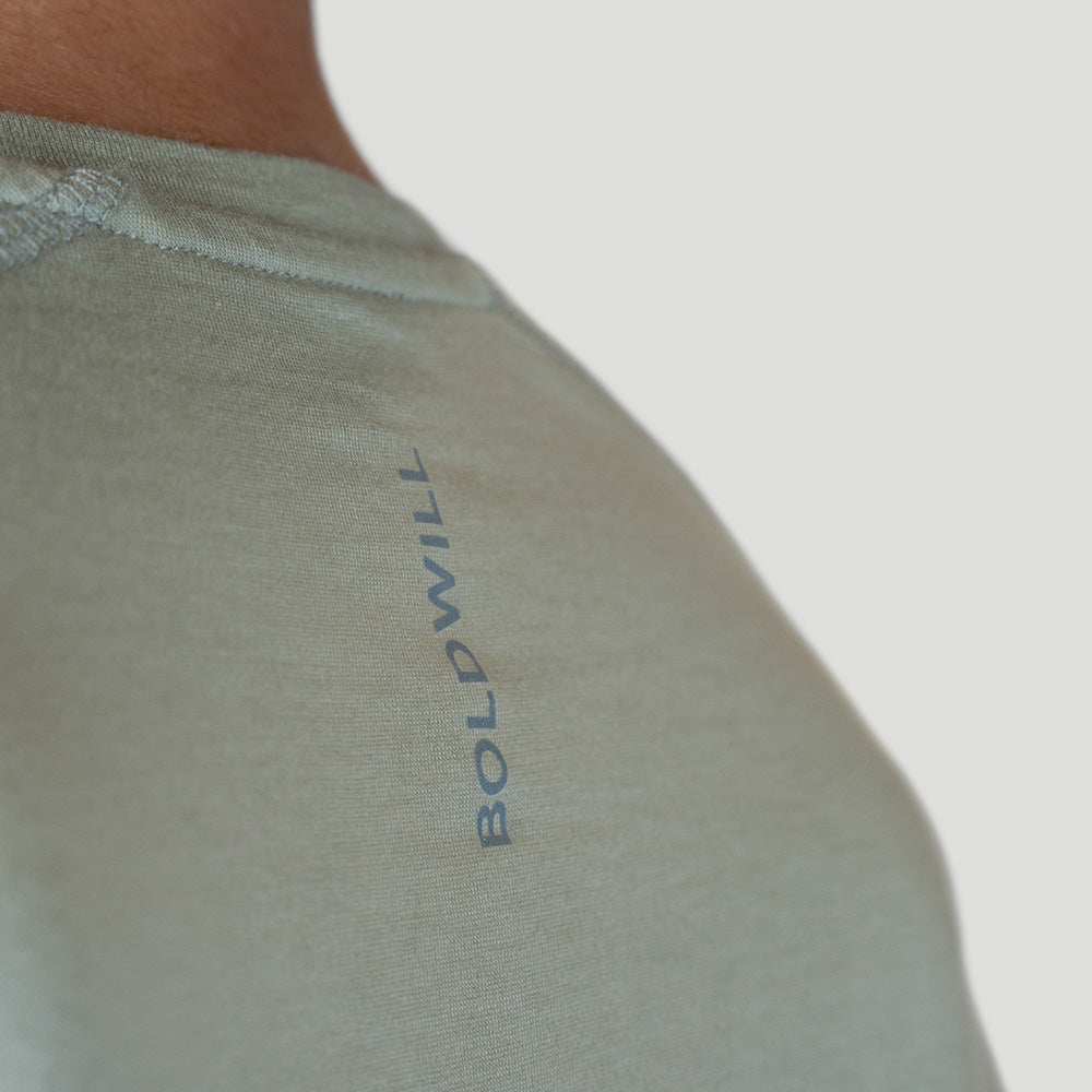 For the design, we’ve chosen our Sage Green color as a basis, with light grey colored design elements. Combined with a regular fit and fitted sleeves, this creates a classic t-shirt, made with the most modern materials from natural origin.